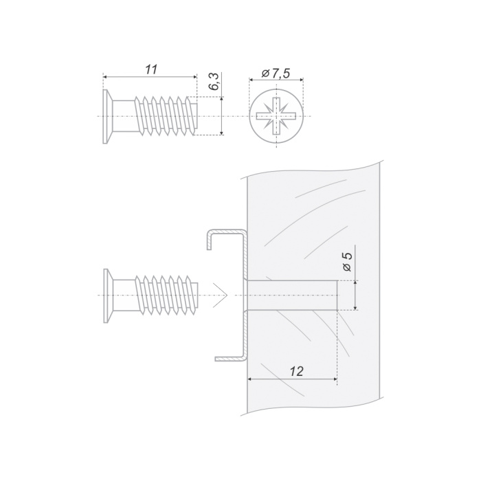 MT03/06 – евровинт 6,3*11 с потайной головкой, имеет широкий спектр применения, используется для надежного монтажа мебельных направляющих, навесов и прочей фурнитуры. Шлиц PZ.