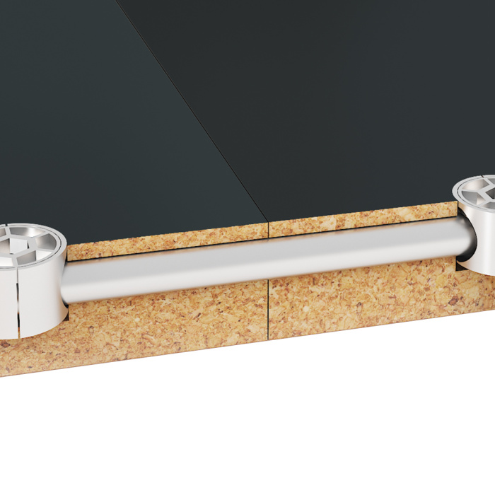 Стяжка ST11/02 для столешниц с межцентровым расстоянием 100 мм обеспечивает надёжное, плотное и незаметное соединение методом встык или наложением.