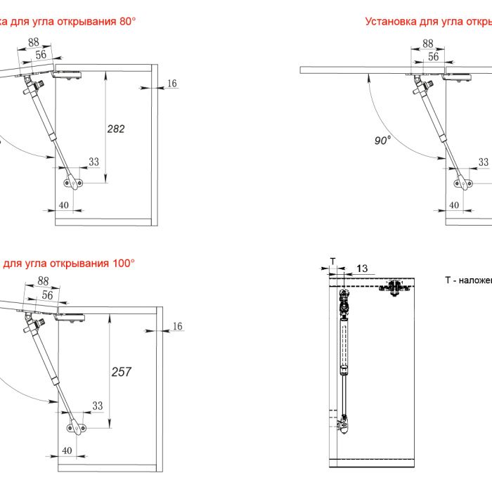 •Петли для откидных элементов монтируются к нижней части створки (заказываются отдельно)