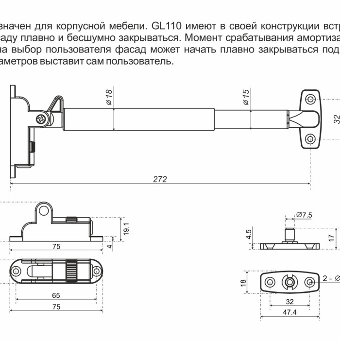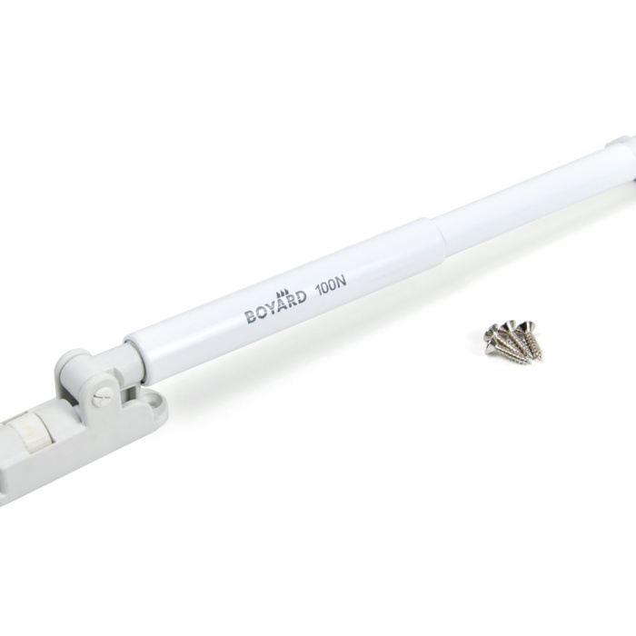 OZON GL110 — газовый лифт для фрикционного открывания фасада вверх, оснащён встроенным амортизатором для плавного и бесшумного закрывания с удобного угла, который возможно настроить под себя.