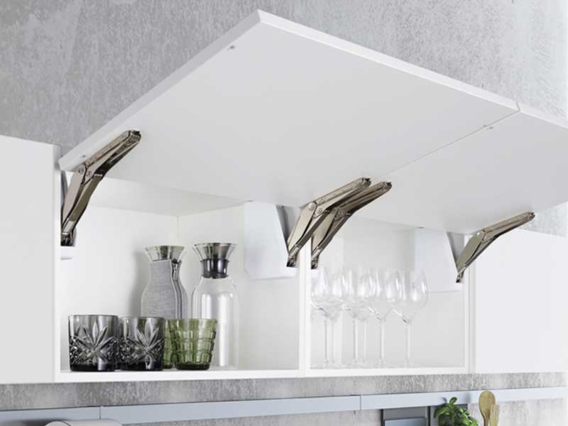 Фри флап идеально подходит для небольших и средних фасадов без использования петель. Компактный размер механизма дает возможность установить его в корпус глубиной от 118 мм, высотой фасада до 650 мм с нагрузкой до 27 кг. Отличное решение для вкладных фасадов, шкафов под потолок и мебели с карнизом. Плавное бесшумное закрывание за счет демпферов и фиксация фасада в любом положении.