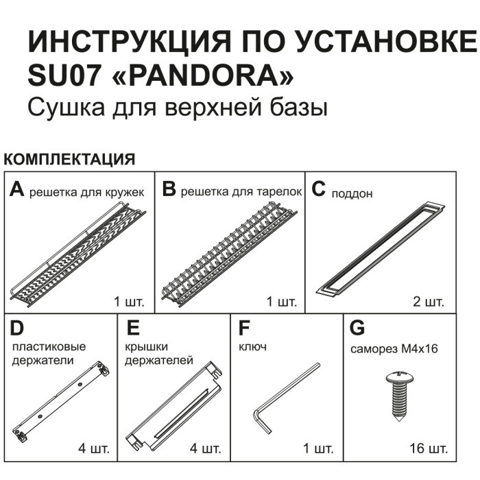 PANDORA SU07 — сушка для посуды в верхнюю базу в современном дизайне ESTETICA и нанопокрытии графитового цвета, которое обеспечивает повышенную износостойкость, ударопрочность и устойчивость к коррозии. Свойства нанопокрытия проверены испытаниями: сушка SU07 легко выдерживает более 180 часов в соляном тумане без проявления каких-либо дефектов.