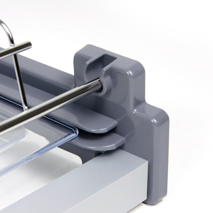 LORA SU06 — двухуровневая сушка для посуды из нержавеющей стали с нижним ярусом L-образной формы для более стабильного удержания разноформатных тарелок. Модель имеет два плотных поддона под каждым уровнем для сбора капель воды, стекающих с посуды. Нижний ярус оснащён поперечным прутком, который препятствует проваливанию маленьких блюдец.
