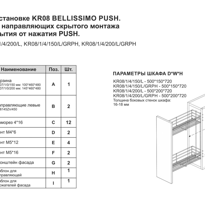 Надёжные направляющие полного выдвижения с механизмом PUSH-TO-OPEN обеспечат стабильное, плавное выдвижение на протяжении 50 000 циклов открывания/закрывания.