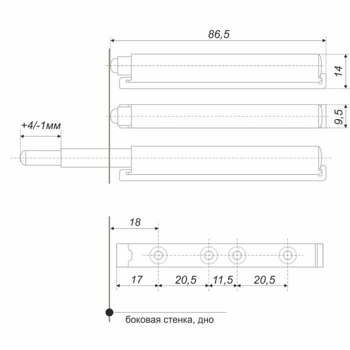 AMF10 – упор-защёлка для открывания и закрывания фасадов без мебельных ручек с помощью нажатия. Механизм предназначен для шкафов с распашными фасадами и совместим с любыми петлями без  амортизатора. AMF10 может применяться с фасадами из различных материалов (дерева, пластика, стекла, с алюминиевым профилем) независимо от веса и габаритов. Для открывания/закрывания среднестатистического фасада на двух петлях достаточно одного механизма AMF10.