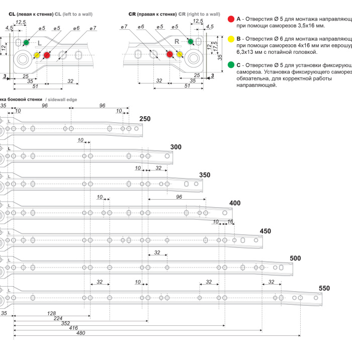 DS03 — роликовые направляющие для мебельных ящиков. Неполного выдвижения, с самозатягиванием и защитой от выкатывания. Форма профиля имеет дополнительное ребро жесткости. Ролик цельный, выполнен из высокопрочного материала ABS.