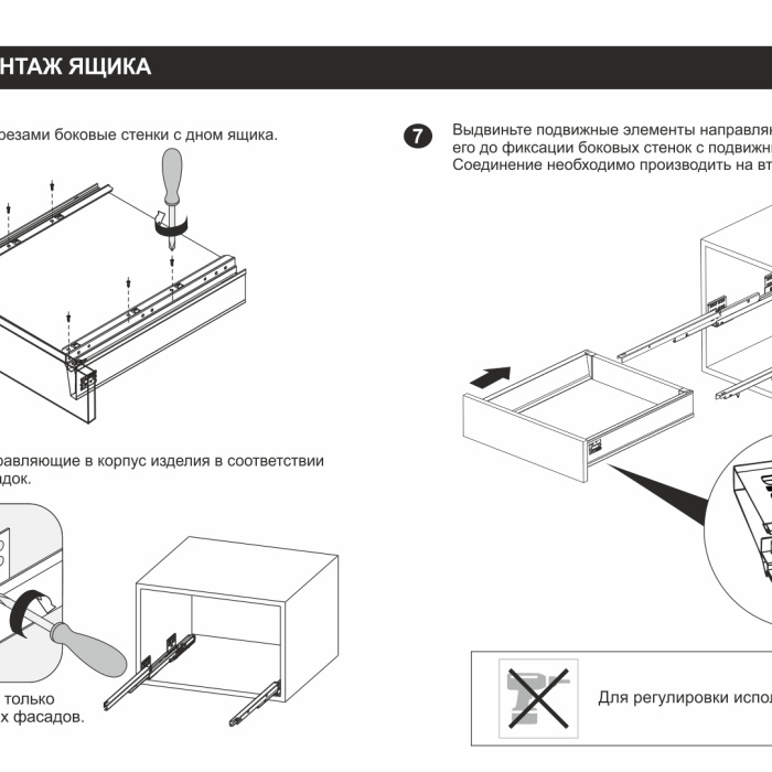 Модель эксклюзивно имеет специальный ограничитель механизма PUSH, что позволит избежать поломки системы выдвижения в процессе установки ящика на направляющие с прилагаемым усилием. Ограничитель также выполняет функцию упора для вкладных ящиков.
