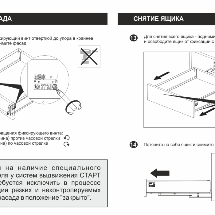 Система выдвижения СТАРТ раздельными комплектующими