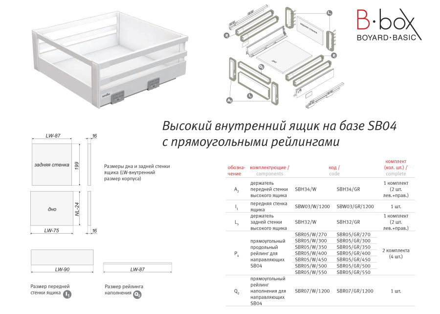 Высокий держатель передней стенки B-Box SBH34/GR